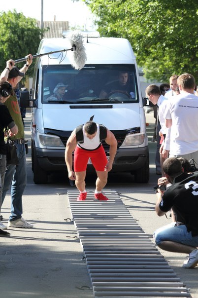 Український атлет Олександр Шепель у Білій Церкві встановив свій новий рекорд: йому вдалося зрушити з місця і протягнути десять мікроавтобусів вагою 37 тон! Їх Олександр відтягнув на 20 метрів.